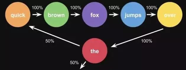 例子,根据这一句话 ‘the quick brown fox jumps over the lazy dog’,要得到markov chains。