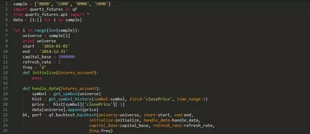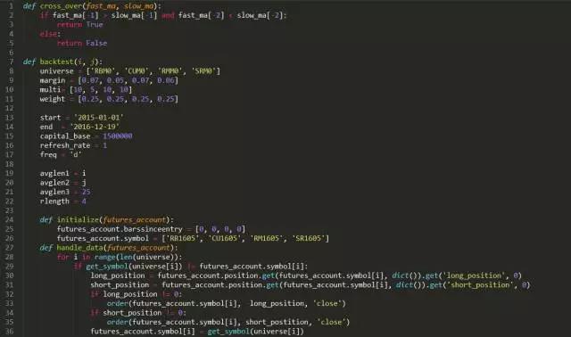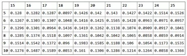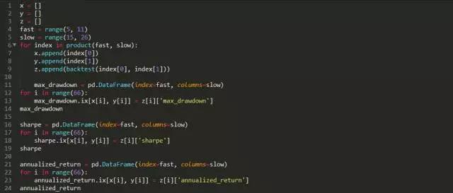 那么参数设为多少合适?指数移动平均线交易系统涉及到三个参数,短周期,长周期,更长的周期。下面我们设置为更长的周期为25,对短周期和长周期进行网格化的遍历,设定短周期范围为5至10,长周期范围为15-25。