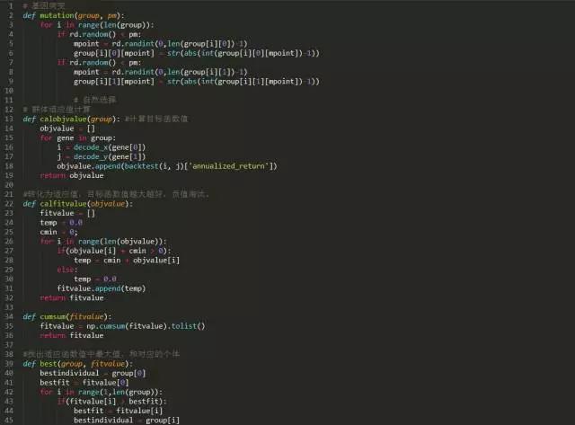 适应度函数:这里的适应度函数即回测,函数的因变量为策略的年化收益率。