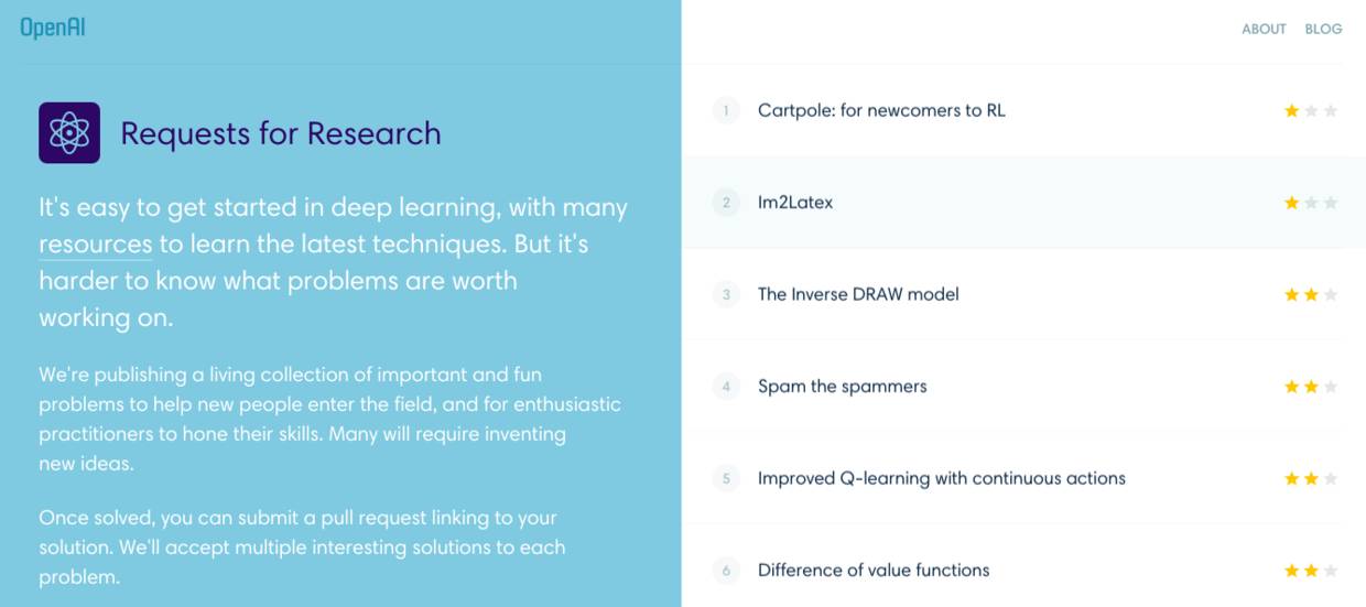 在 Gym 变得更加稳定后, OpenAI 近期向大家征求未来的研究项目,这里可以看到相应的项目和评分。