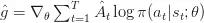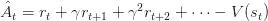 然而,我们并不知道正确的行动. 相反,我们会尝试对行动好坏进行粗略的猜测,试着去增加好的行动的概率. 更加具体地讲,假设我们刚收集完 agent 和环境一个 agent 和环境回合的交互,所以我们有了一个状态、行动和收益的序列: