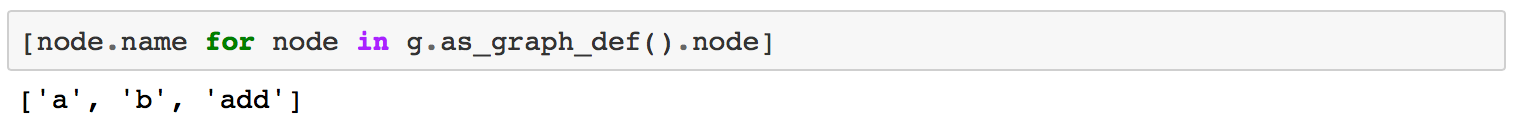 让我们来看看GraphDef的简单表达。 首先,我们查看图中所有节点的名称。