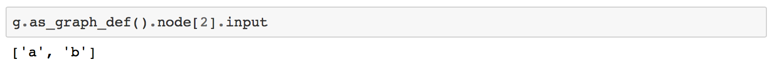 接下来,我们可以看看图中的边。 每个GraphDef节点都有一个输入字段,指定具有边缘的节点。 让我们来看看: