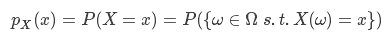 上面公式的含义为在随机变量X的映射函数下,所有样本空间中的结果在此映射下输出结果为x的概率。