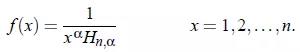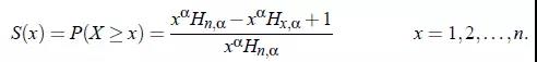 用X~Zipf(alpha,n)表示随机变量X具有带参数alpha和n的Zipf分布。带有参数alpha和n的Zipf随机变量X是有概率质量函数在里面。