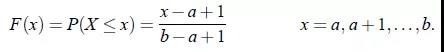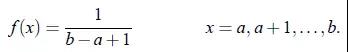 X∼discrete uniform(a,b)随机变量X和整数离散均匀分布参数a和b,a < b。
