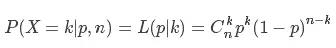 其中L(p|k)表示二项式分布的最大似然估计计算方式。然后将