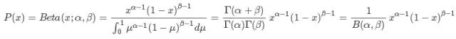 目的是计算得到p的概率分布,而不是固定的值。首先根据之前的经验或者统计,假设p服从Beta(a,b)分布,a表示之前统计中为正的次数,b为之前统计中为负的次数。接着,根据新做的实验或者新到达的信息X,来修正p的分布,修正后的p同样是服从Beta分布,只不过是参数由(a,b)变成(a+m,b+n),m表示新得到的信息中为正的次数,n表示新得到的信息中为负的次数。这样的修正过程可以很直观的被理解,而且修改前后是兼容的,很好的体现了一个学习修正的过程。