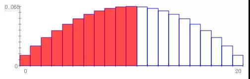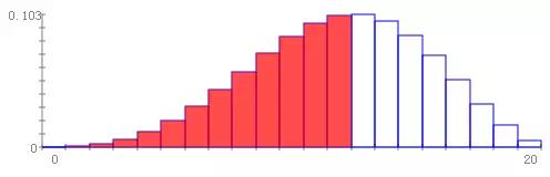 n = 20 的概率质量函数和3个不同参数如下图所示: