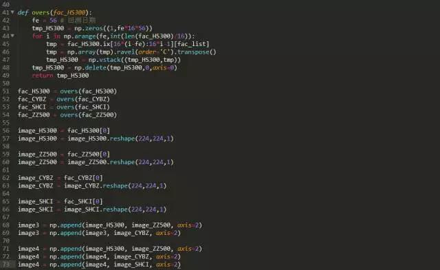 设定使用几个指数线的56天技术分析因子作为训练数据,使用CNN网络卷积进行提取特征,下面两幅图片就是从CV角度看到的我们输入的多因子数据。
