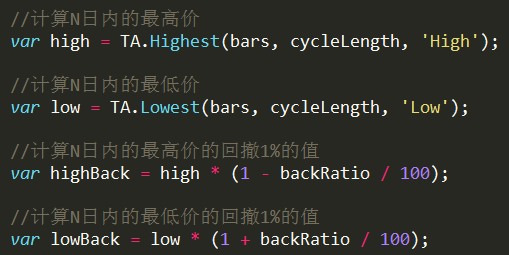 空头平仓:如果当前持有空单,并且价格大于前 N 根 K 线内的最低价与前 N 根 K 线内的最高价的和的一半。