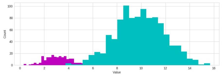 model = GeneralMixtureModel.from_samples(ExponentialDistribution, 2, X)