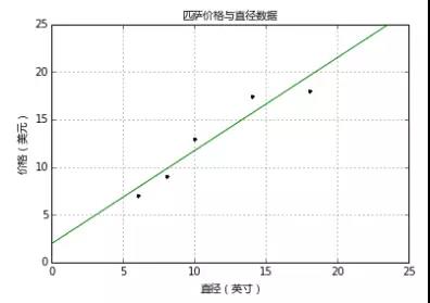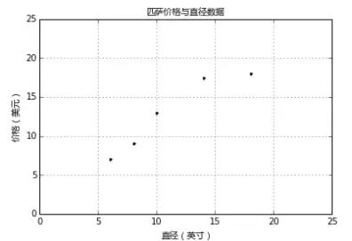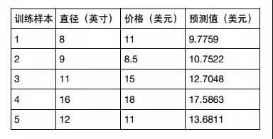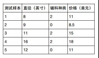 假设你想计算匹萨的价格。虽然看看菜单就知道了,不过也可以用机器学习方法建一个线性回归模型,通过分析匹萨的直径与价格的数据的线性关系,来预测任意直径匹萨的价格。先用scikitlearn写出回归模型,然后介绍模型的用法,以及将模型应用到具体问题中。假设我们查到了部分匹萨的直径与价格的数据,这就构成了训练数据,如下表所示: