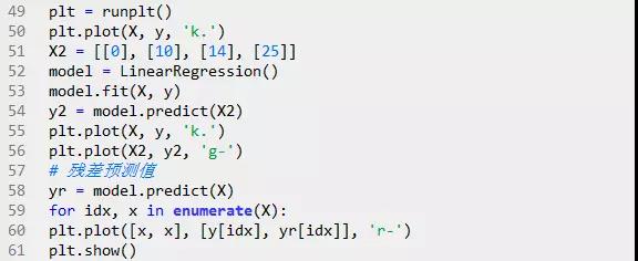 模型的残差是训练样本点与线性回归模型的纵向距离,如下图所示:
