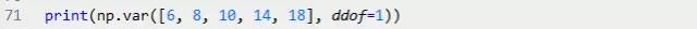 Numpy里面有var方法可以直接计算方差,ddof参数是贝塞尔(无偏估计)校正系数(Bessel'scorrection),设置为1,可得样本方差无偏估计量。