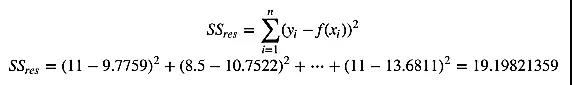 其中, 是观测值, 是预测值。残差平方和计算如下: