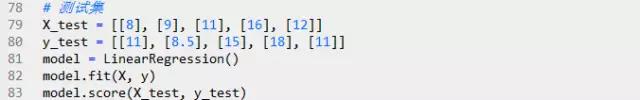 R方是0.6620说明测试集里面过半数的价格都可以通过模型解释。现在,用scikit-learn来验证一下。LinearRegression的score方法可以计算R方:
