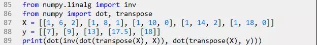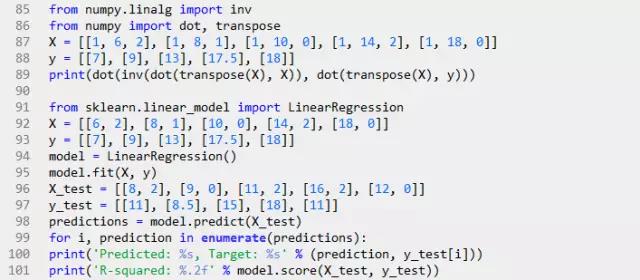 学习算法评估三个参数的值:两个相关因子和一个截距。 的求解方法可以通过矩阵运算来实现。