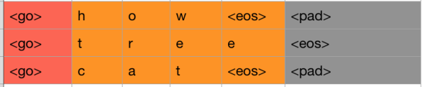 我们首先需要对target端的数据进行一步预处理。在我们将target中的序列作为输入给Decoder端的RNN时,序列中的最后一个字母(或单词)其实是没有用的。我们来用下图解释:
