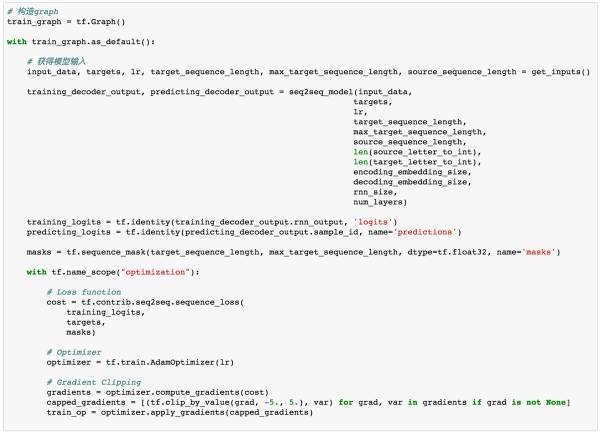 在训练过程中,我们需要将我们的target序列作为输入传给Decoder端RNN的每个阶段,而不是使用前一阶段预测输出,这样会使得模型更加准确。(这就是为什么我们会构建Training和Predicting两个Decoder的原因,下面还会有对这部分的解释)。