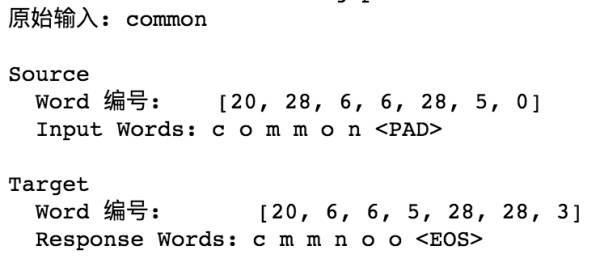 - target_data: 每一行是经过字母排序后的“单词”,它的每一行与source_data中每一行一一对应