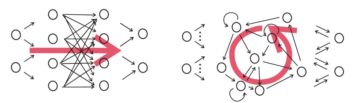 图1 左:FNN,右:RNN