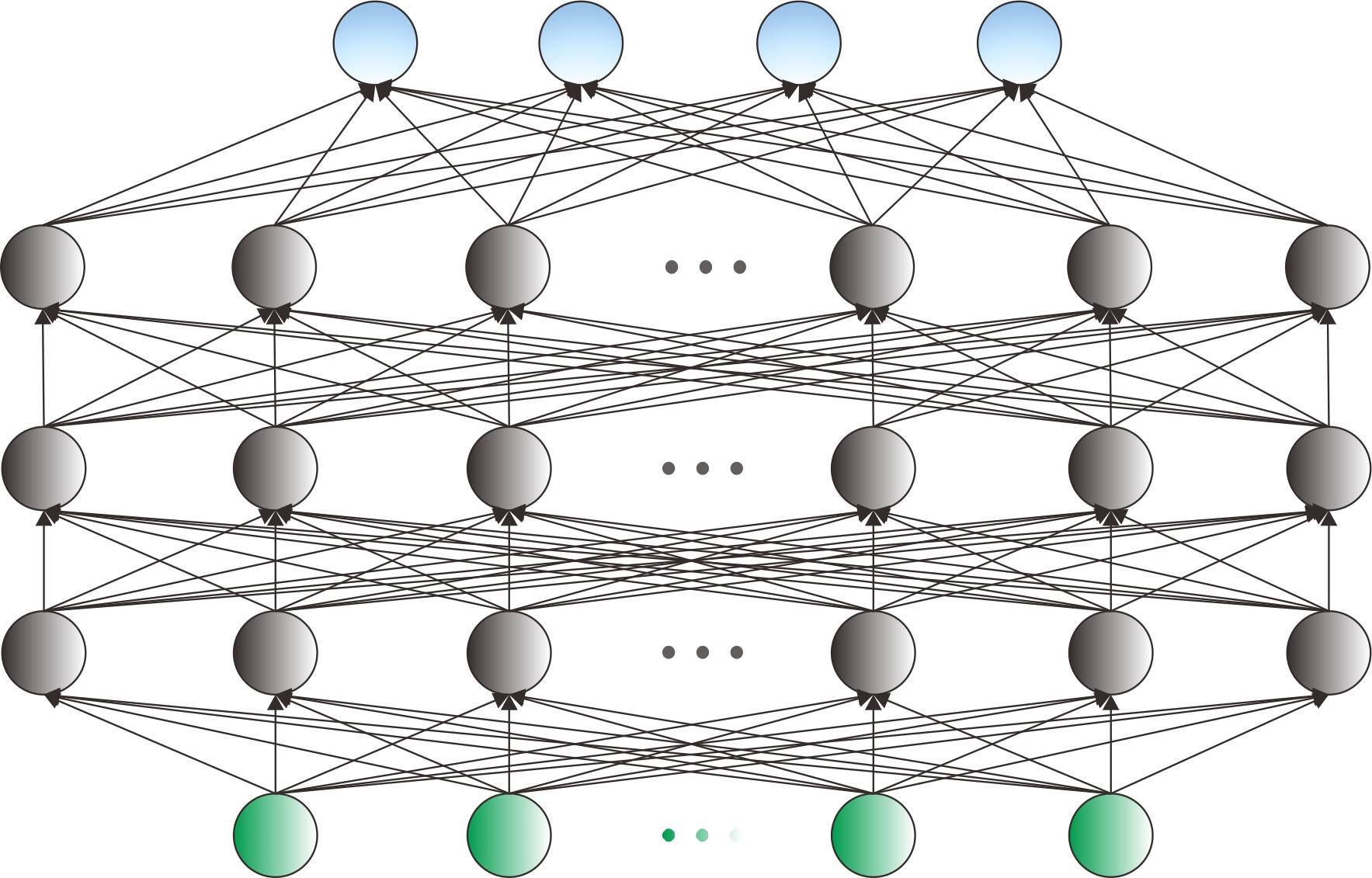 利用MLP的前向计算公式,将输入值代入MLP网络得输入层神经元中,计算出每一个隐含层的神经元激活值以及输出层每个神经元的值。