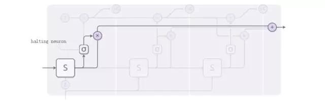 由于 ACT 的主要目标是自适应计算次数,也就是图例中 sigmoid 函数传导的次数。设阈值为 epsilon,当 halting 神经元给出的累积概率超过阈值,则停止计算,将停止 前的次数进行加权,也就是图例中的三个输出实际上个数是变动的。