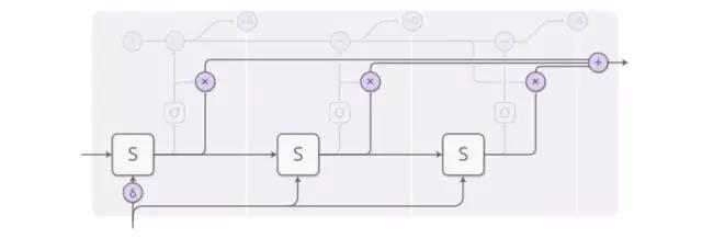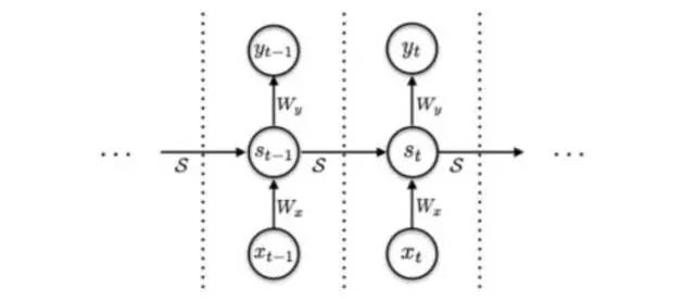 每一步的矩形将输入端的Xt进行了N次处理,最终输出的st是N次处理的st的加权,以此增加了网络计算的复杂度。而传统的RNN的基本结构: