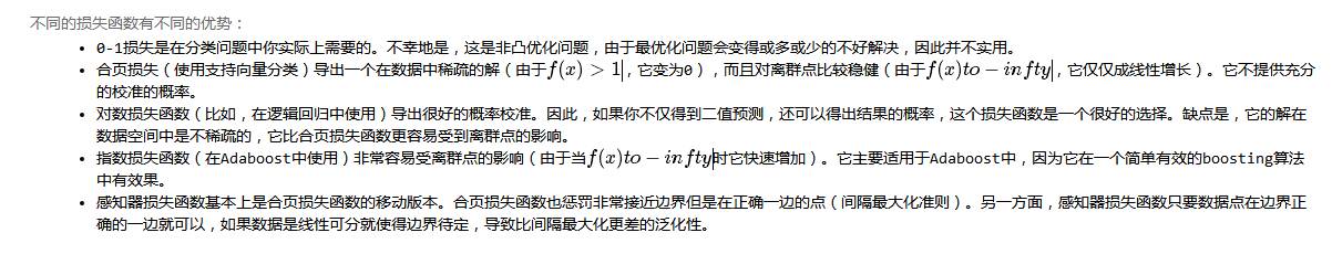 损失函数的选择也非常重要。下面是不同损失函数的说明: