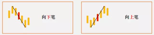 两个相邻的顶和底,并且顶分型和底分型之间至少有一根**的K线,这就构成一笔,笔从其构成的K线走向看分为向上笔和向下笔。