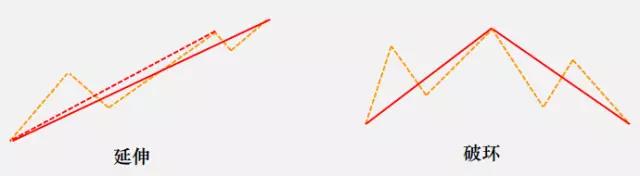 线段产生以后,若不在相反方向产生新线段,那么这个线段在同方向上继续延伸,否则称为线段被线段破环。