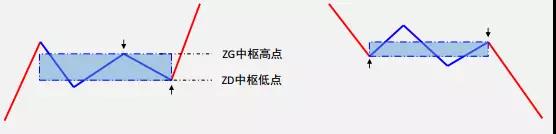 • 某级别走势类型中,被至少三个连续次级别走势类型所重叠的部分称为中枢。向上走势 考察下上下…的次级别,向下走势考察下上下…的次级别。
