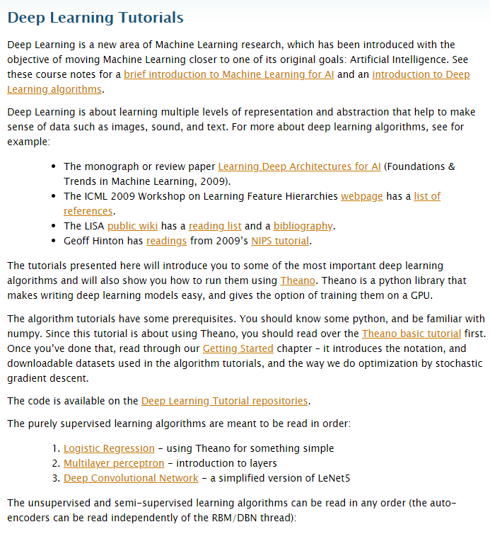 Deep Learning Tutorials-深度学习笔记及代码,介绍最基础的逻辑回归、多层感知器、自动编码器、CNNs、LSTM等深度学习算法。
