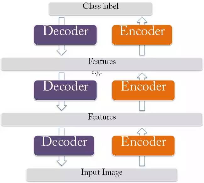 认知过程,通过下层的输入特征(Input)和向上的认知(Encoder)权重产生每一层的抽象表示(Code),再通过当前的生成(Decoder)权重产生一个重建信息(Reconstruction),计算输入特征和重建信息残差,使用梯度下降修改层间的下行生成(Decoder)权重。也就是“如果现实跟我想象的不一样,改变我的生成权重使得我想象的东西变得与现实一样”。