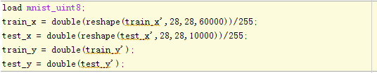 该模型使用了mnist的数字mnist_uint8.mat作为训练样本,作为cnn的一个使用样例,每个样本特征为一个28*28=的向量。