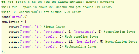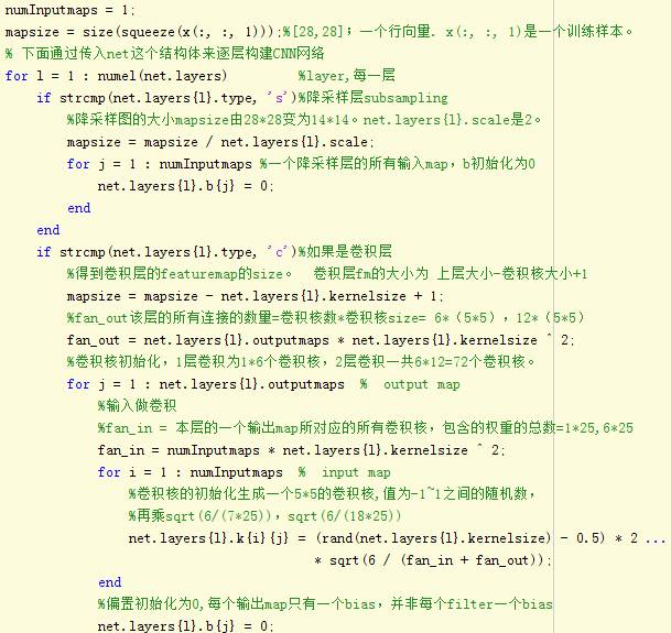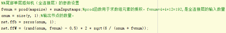 net.layers{l}.k{i}{j} =(rand(net.layers{l}.kernelsize) - 0.5) * 2 * sqrt(6 / (fan_in + fan_out));