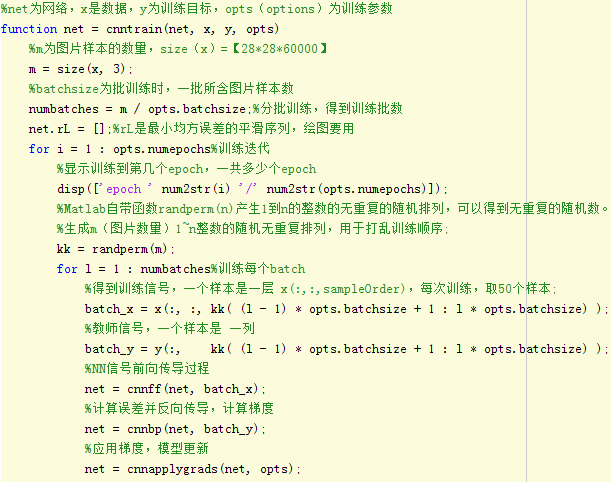 3 cnntrain函数 训练cnn,把训练数据分成batch,然后调用