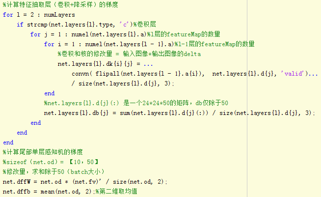 3.2 cnnbp计算并传递神经网络的error,并计算梯度(权重的修改量)