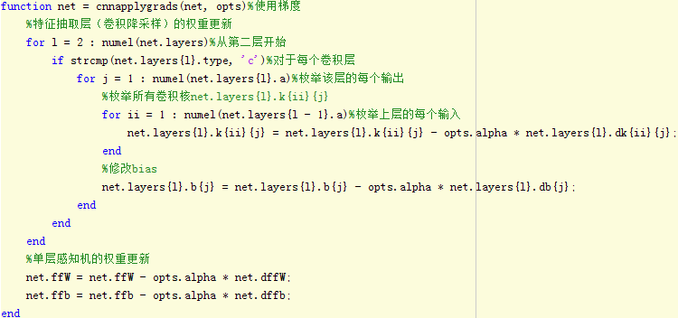 Cnnapplygrads.m把计算出来的梯度加到原始模型上去