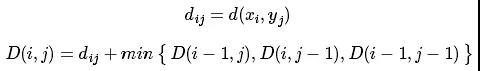 最终获得的 D(m,n) 即是多变量序列 X 和 Y 的动态时间规整距离。这是一个动态规划问题,可以通过 O(mnq) 次计算,获得两个多变量序列的最优匹配(其中 dij=d(xi,yi) 的计算复杂度为 O(q) 。