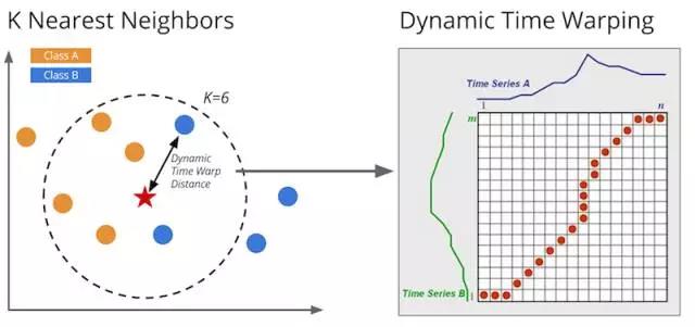 通过动态时间规整计算两个序列的距离。