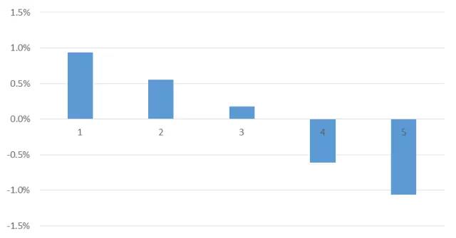 图表4:分组相对于市场平均收益的超额收益(月度均值)
