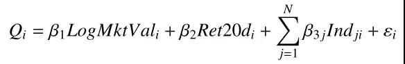 为了考察情绪因子本身的收益特征,我们考虑通过横截面回归取残差的方式,对市值、动量、行业等因子进行剔除。横截面回归模型如下: