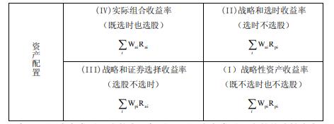 对于战略性资产配置,利用 BHB 模型,可以对基金实际组合收益率进行分解,如表 1 所示。