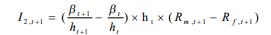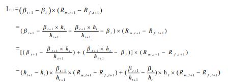 其中,ht+1和 ht分别表示基金投资组合在 t+1 期和 t 期的股票持仓比例;βt+1和βt分别 表示基金投资组合在 t+1 和 t 期的系统风险。我们将公式(3)式的前半部分定义为 I1,t+1,即