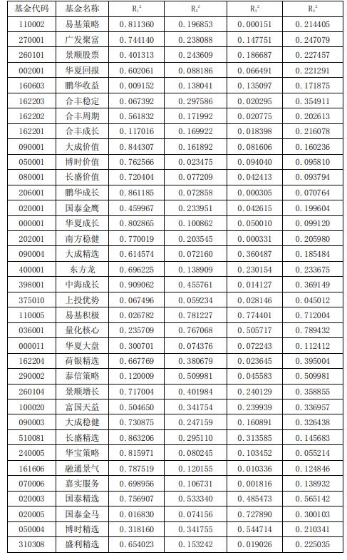 其中:t=1,2,3……T,T 为样本期长度。各基金的战略性资产配置 比例 Wpi 用该基金在整个研究期内各季度的实际配置比例 Wai 的算数平均值来计算,即