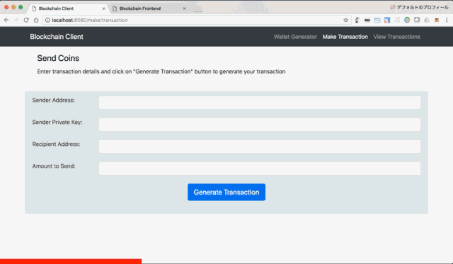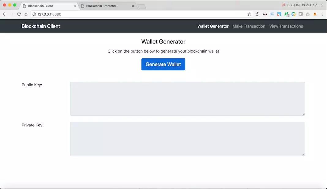 我在原始代码的基础上进行了一些改动,向交易中加入了RSA加密,并实现了钱包生成和交易加密,两个界面使用HTML/CSS/JS 实现。