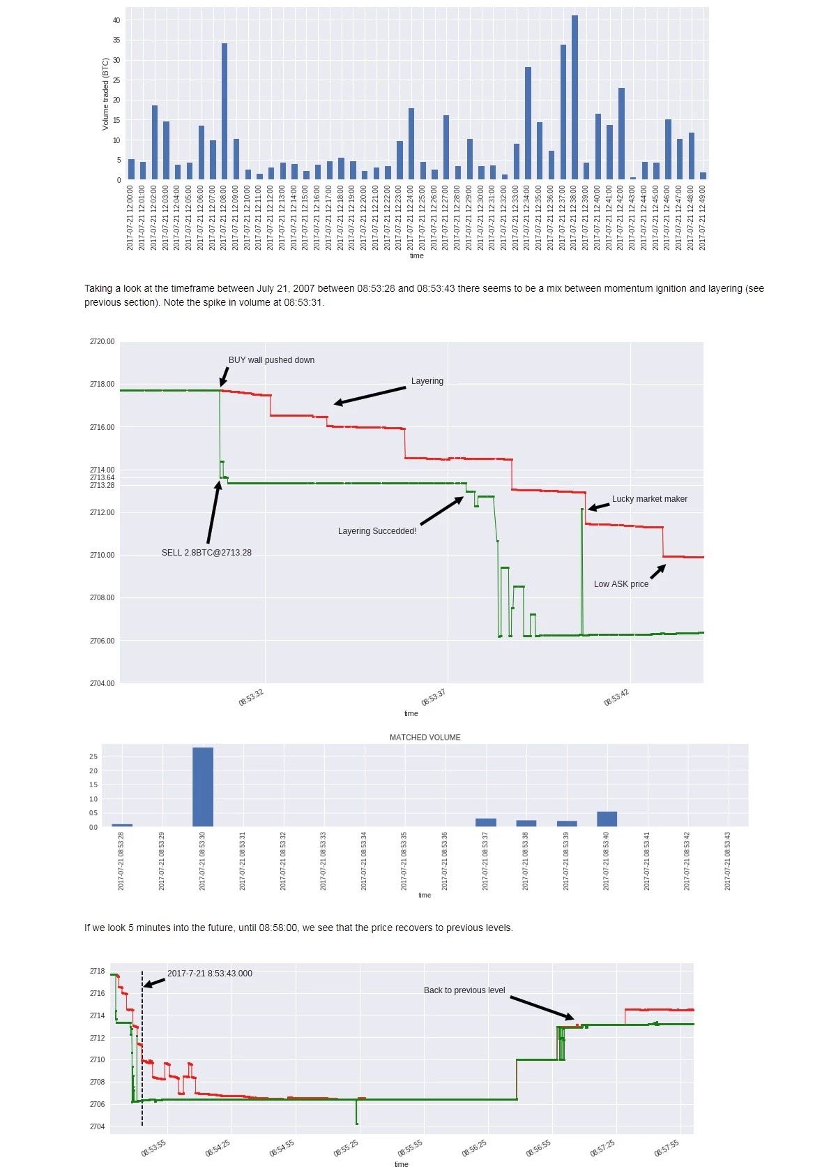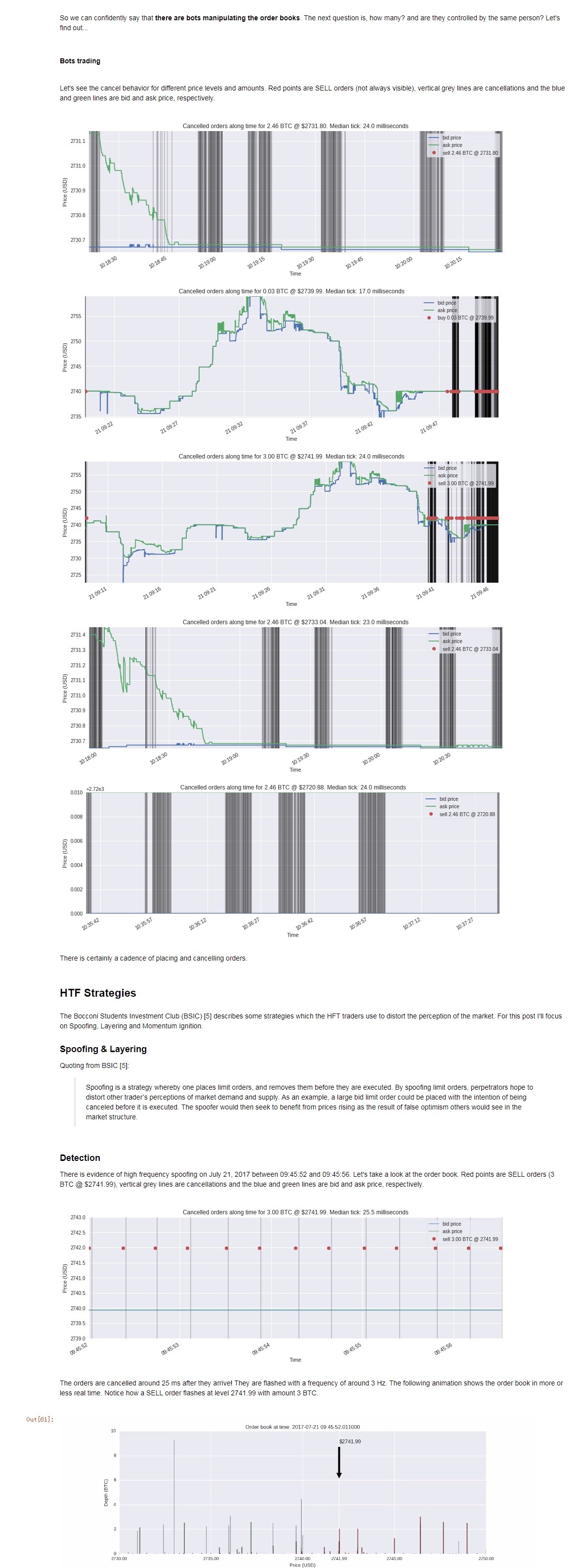 在这篇文章中,分析了比特币交易所中高频交易一些问题。 由于迄今为止这个市场极不受管制,因此这种行为几乎没有任何限制。 文章展示了超过99%的订单是如何填补的,而不是扭曲市场的看法。 此外,文章还尝试发现常见的HFT策略,例如 Quote Spoofing, Layering 和 Momentum ignition。 鉴于这些交换的匿名性质,最后的这些结果在某种程度上都是主观的。