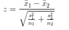 将用户分割出两个群体体验产品功能,原始对照组和改进组都有50000用户。对照组的七日平均活跃数u1=8500,标准差为s1=1250,改进组的七日平均活跃数为u2=8300,标准差s2=1240。当总体标准差未知时,有公式: